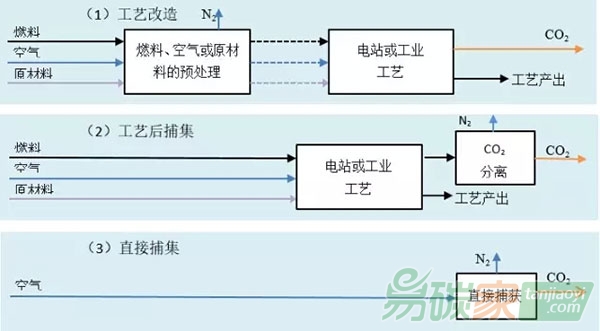 (2)是將來(lái)自一個(gè)工業(yè)過(guò)程的排放濃縮為一個(gè)純的或接近純的二氧化碳?xì)饬鳎ɡ?,從發(fā)電站或