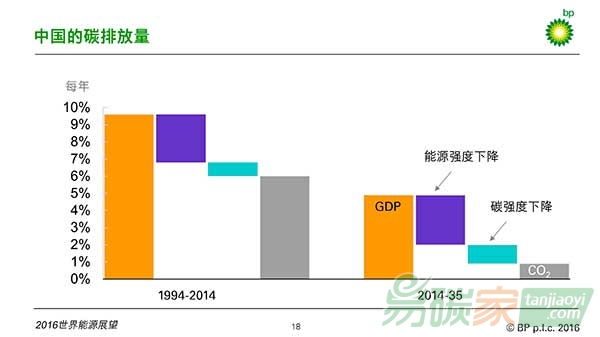 這是2016版《展望》的基本判斷。但這次的報(bào)告與之前的的預(yù)測(cè)有了些許不同。比如,2035年的能源需求預(yù)測(cè)被下調(diào)了1%,也就是1.5億噸油當(dāng)量。