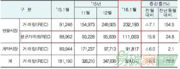 電力(韓國準(zhǔn)確的名稱叫REC,Renewable Electricity Credit, 1個REC等于1Mwh的電力)賣的很貴。多貴呢?下面是今年1月份的REC市場數(shù)據(jù)。