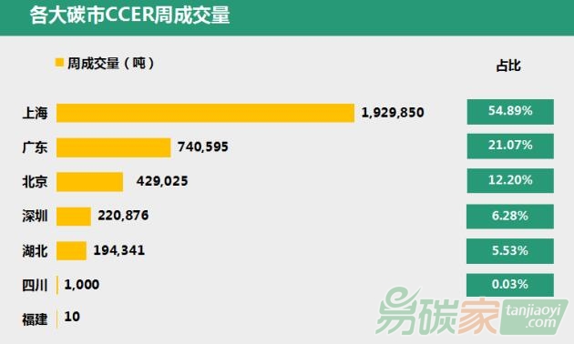 上周,上海、廣東等地產(chǎn)生CCER交易,成交量共計(jì)3,515,697噸。其中,上海碳市CCER交易明顯活躍,周成交量(1,929,850噸)較前一交易周(1,174噸)明顯攀升。各大碳市CCER交易情況請見下表: