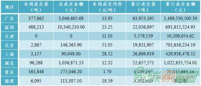 市場活躍度有所上升,共成交配額113.63萬噸,較前一周上漲55.42%,總成交金額為1504.85萬元,較前一周上漲17.47%。廣東