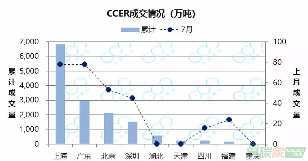 北京、上海、湖北。北京和上海履約截至日期為7月31日,湖北為8月31日。三地7月市場成交活躍,“?!睔鉀_天,北京線上交易價(jià)格已漲至70元/噸左右,上海超過40元/噸,湖北超過20元/噸;(3)尚未公布履約截止日期的:包括重慶和