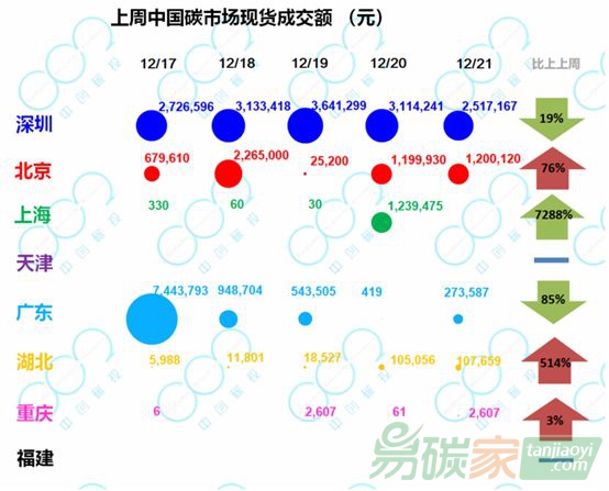 ccer成交情況2018年12月17日-12月21日,廣東市場表現(xiàn)活躍,CCER累計成交90萬噸;福建市場和上海市場分別成交5.6萬噸和3.9萬噸;