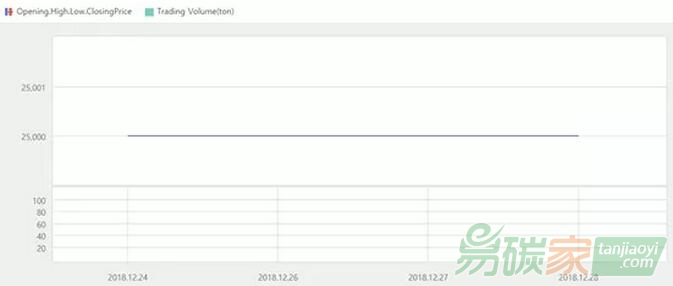 2018年12月24日至2018年12月30日,韓國碳市場價格為25000韓元/噸(約22.15美元/噸)。