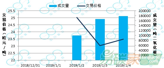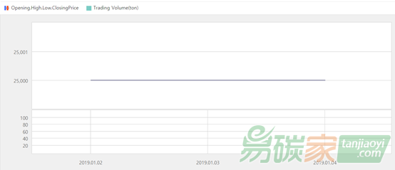 2018年12月31日至2019年01月06日,韓國碳市場價(jià)格為25000韓元/噸(約22.15美元/噸)。
