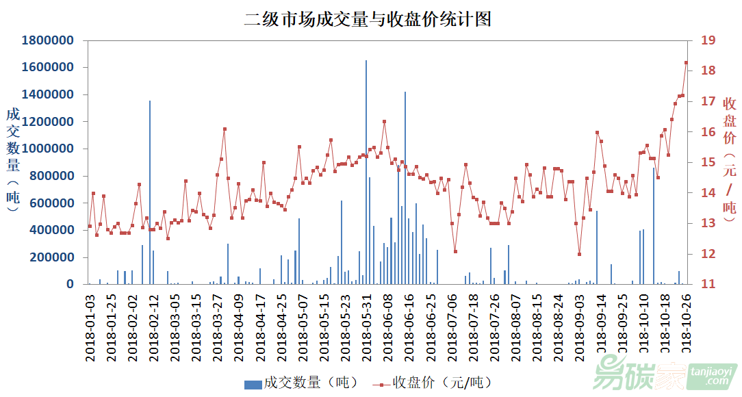(廣東碳配額價(jià)格呈現(xiàn)上升態(tài)勢(shì))2018年1月至10月
