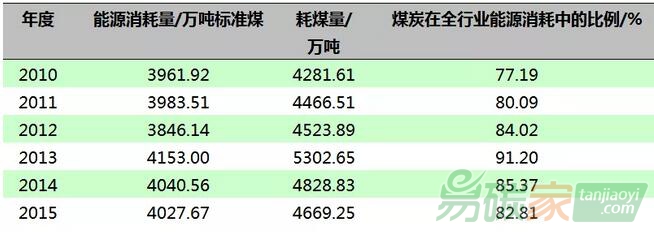 表4:2010—2015年中國造紙及紙制品業(yè)耗煤量及在行業(yè)能耗總量中的比例