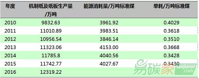 表1:2010—2015年中國造紙及紙制品業(yè)生產量和能耗情況