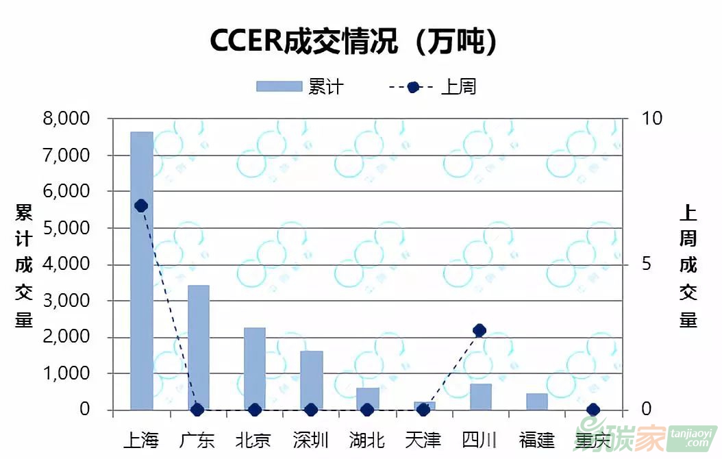 四川市場繼續(xù)保持活躍,累計成交2.7萬噸;上周廣東、北京、深圳、湖北、天津、重慶CCER市場無成交。