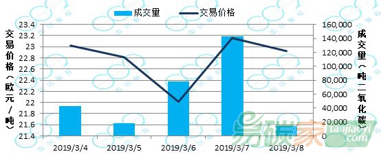碳市場日交易均價(jià)在22.02-23.16歐元/噸之間波動。