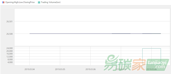 加州-魁北克碳市場2019年加州-魁北克碳市場于2月20日舉行了本年第一次拍賣,拍賣價(jià)格為15.73美元/噸,拍賣成交量為598.3萬噸配額。本年剩余拍賣計(jì)劃于5月14日、8月20日、11月19日舉行。 韓國碳市場2019年03月04日至2019年03月10日,韓國碳市場價(jià)格為26500韓元/噸(約23.54美元/噸)。