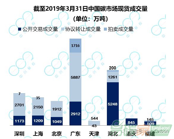 截至2019年3月31日,9個(gè)備案的交易所共成交CCER 1.76億噸,其中上海成交7833.2萬(wàn)噸,占比約44%。3月,上海、廣東、北京、深圳、