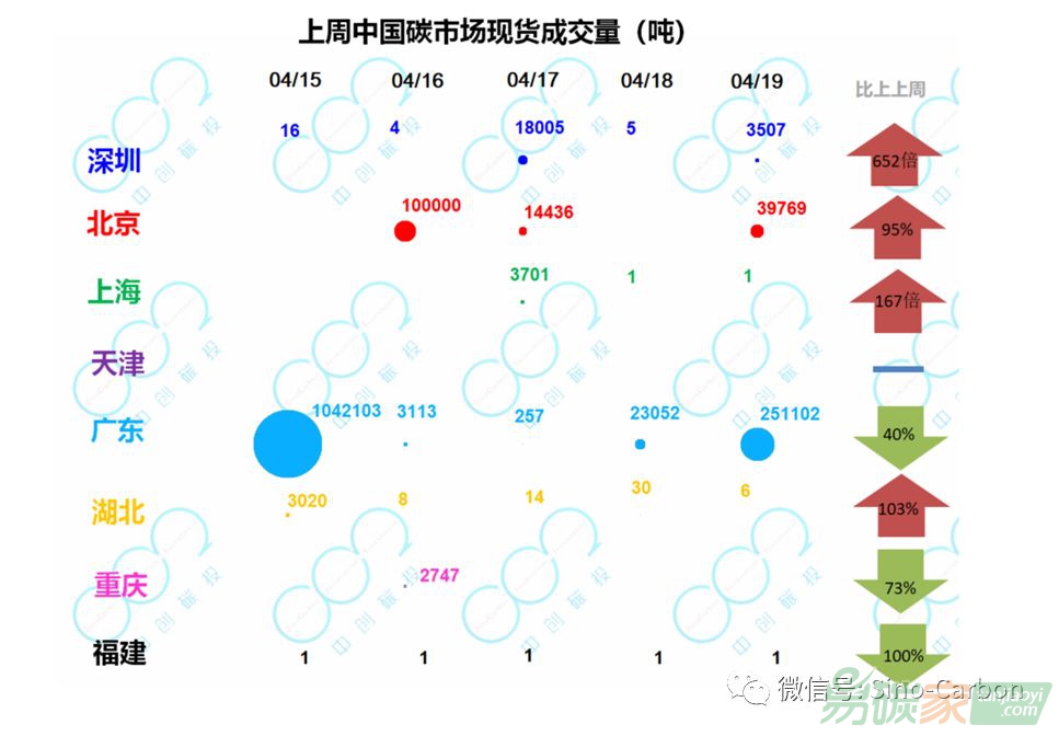 ccer市場(chǎng):2019年4月15日-4月19日,上海CCER市場(chǎng)表現(xiàn)最為活躍,共計(jì)成交54.3萬(wàn)噸;其次為廣東,成交近10萬(wàn)噸;