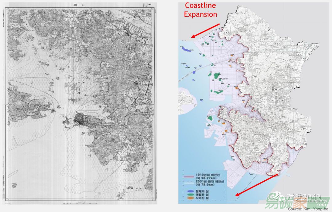更好地設(shè)計沿海路線,見上圖右圖是2003年仁川沿海設(shè)計。