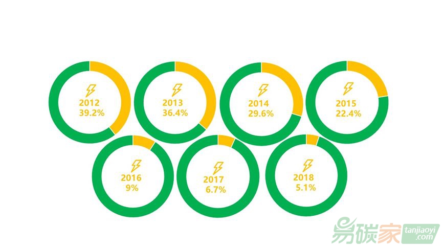 圖2:2012-2018英國煤電發(fā)電量占總發(fā)電量比例圖