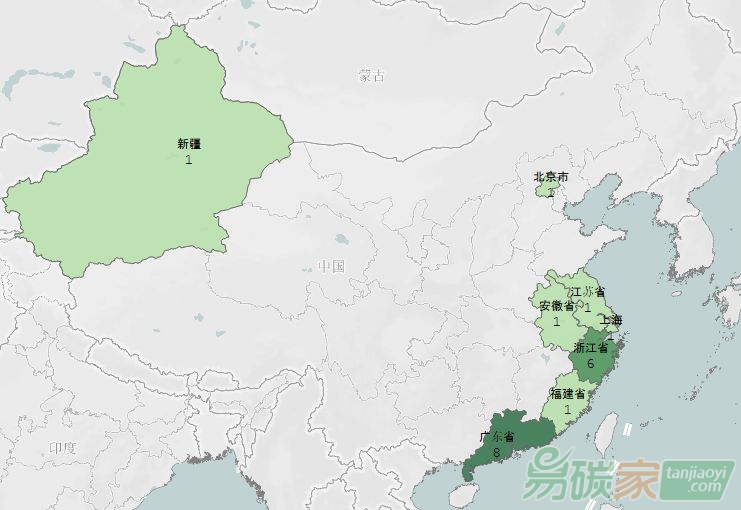 圖4 2018年家居行業(yè)市值前二十名的地理統(tǒng)計(jì)圖
