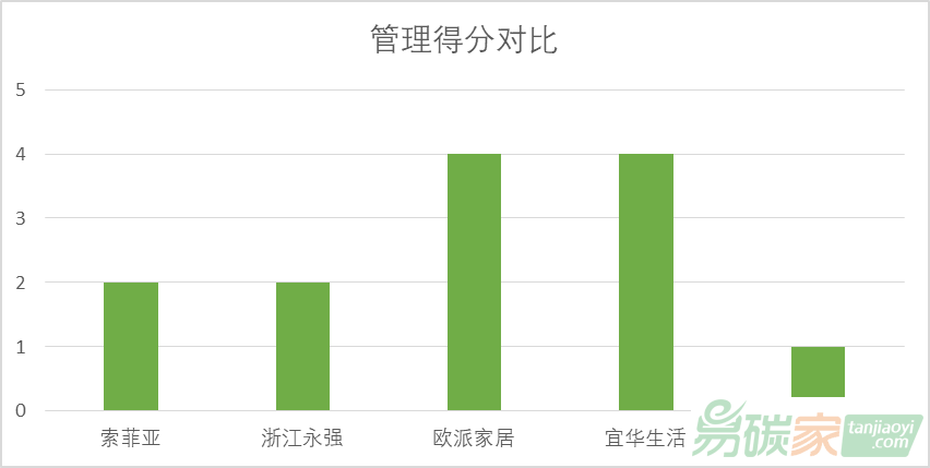 其中,宜華生活家居處在中間位置,比整體評分最優(yōu)的索菲亞公司少了兩檔。但總體而言,宜華生活ESG總分處于家居生活業(yè)內(nèi)相對中度區(qū)間。