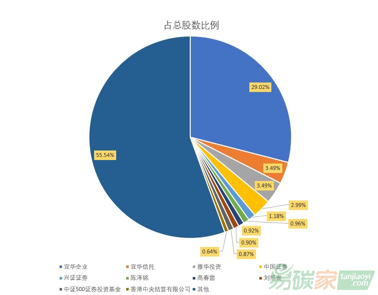 圖10 2018年宜華生活十大股東占比率圖示數(shù)據(jù)來源:wind金融