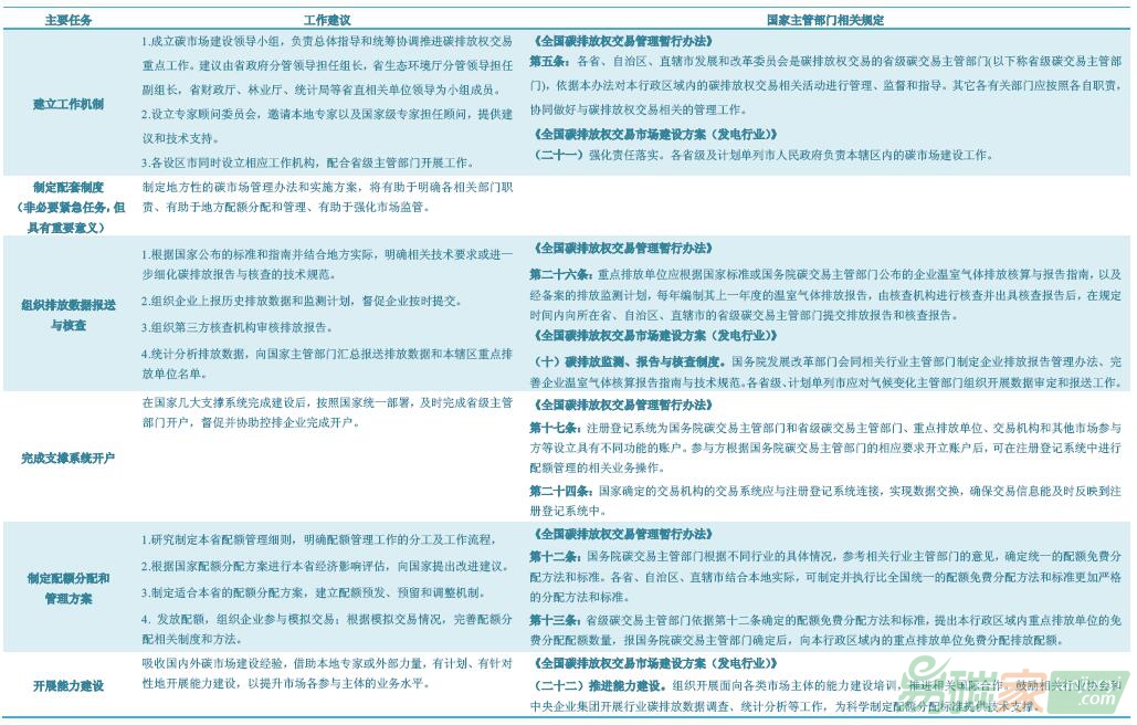 表1:省級主管部門在碳市場基礎(chǔ)建設(shè)階段的主要任務(wù)及建議