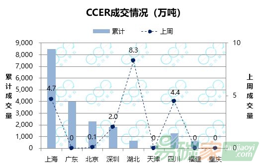 四川,兩市場分別成交4.7萬噸、4.4萬噸;深圳成交2萬噸,北京成交1060噸;其他試點(diǎn)地區(qū)CCER市場無成交。