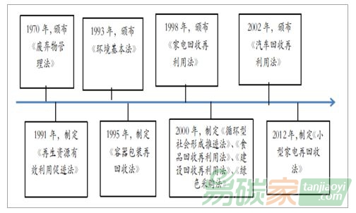 政策,集中于垃圾末端處理,填埋和焚燒是處理垃圾的主要方式,公民沒有參與垃圾分類管理之中。此后,20世紀(jì)80年代,日本處于“泡沫經(jīng)濟(jì)”時(shí)期,消費(fèi)增加使廢棄物排放進(jìn)一步增加并呈現(xiàn)多樣化的特點(diǎn),廢棄物非法排放經(jīng)常出現(xiàn)。為應(yīng)對(duì)日趨嚴(yán)重的垃圾危機(jī),日本政府及時(shí)調(diào)整垃圾管理政策,開始實(shí)行垃圾分類回收。在政府和民眾共同努力下,日本逐漸建立起了完善的垃圾分類處理機(jī)制,由末端處理轉(zhuǎn)向源頭治理。進(jìn)入21世紀(jì),日本提出建設(shè)循環(huán)型社會(huì),提倡3R原則,垃圾分類處理更加注重循環(huán)利用和資源再生。