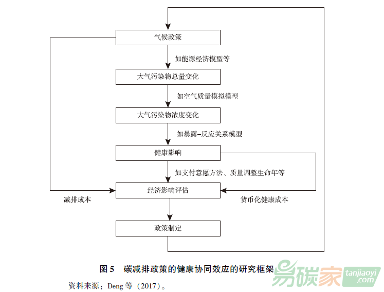 減排對(duì)人群健康影響機(jī)制的“多鏈條”、“跨系統(tǒng)”和“交互式”特點(diǎn),綜合所有機(jī)制系統(tǒng)分析減排的健康協(xié)同效應(yīng)是十分困難的。因此大部分研究選擇其中某一或某幾個(gè)影響鏈條進(jìn)行研究分析。其中研究較多的是