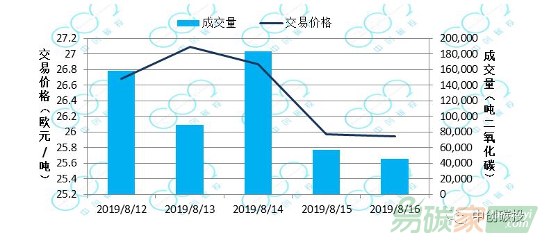 碳市場日交易均價(jià)在27.09-25.97歐元/噸之間波動(dòng)。