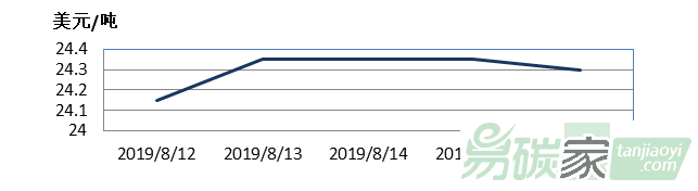2019年08月12日至2019年08月16日,新西蘭碳市場價(jià)格在24.15-24.35美元/噸之間波動(dòng)。