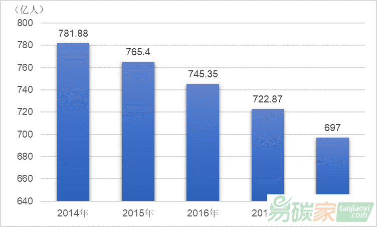 圖 4 2014-2018年全國(guó)城市公共汽電車(chē)客運(yùn)量數(shù)據(jù)來(lái)源:交通運(yùn)輸部