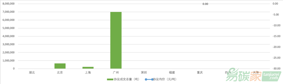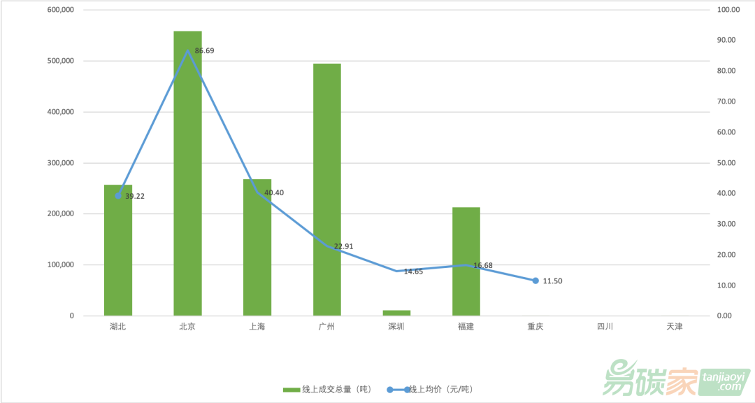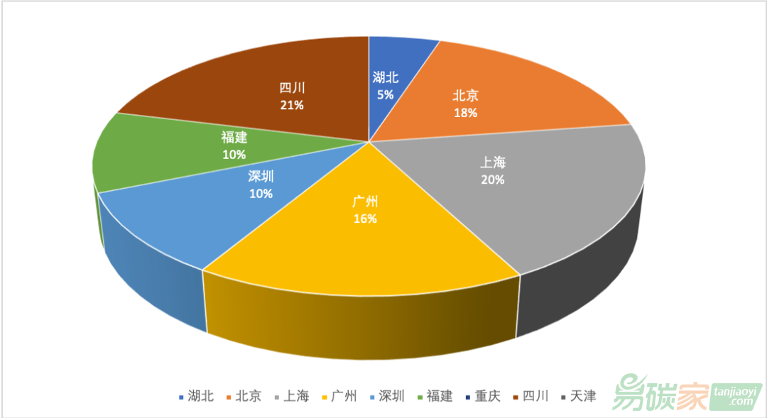四川、上海、北京碳市場(chǎng)成交量較多。