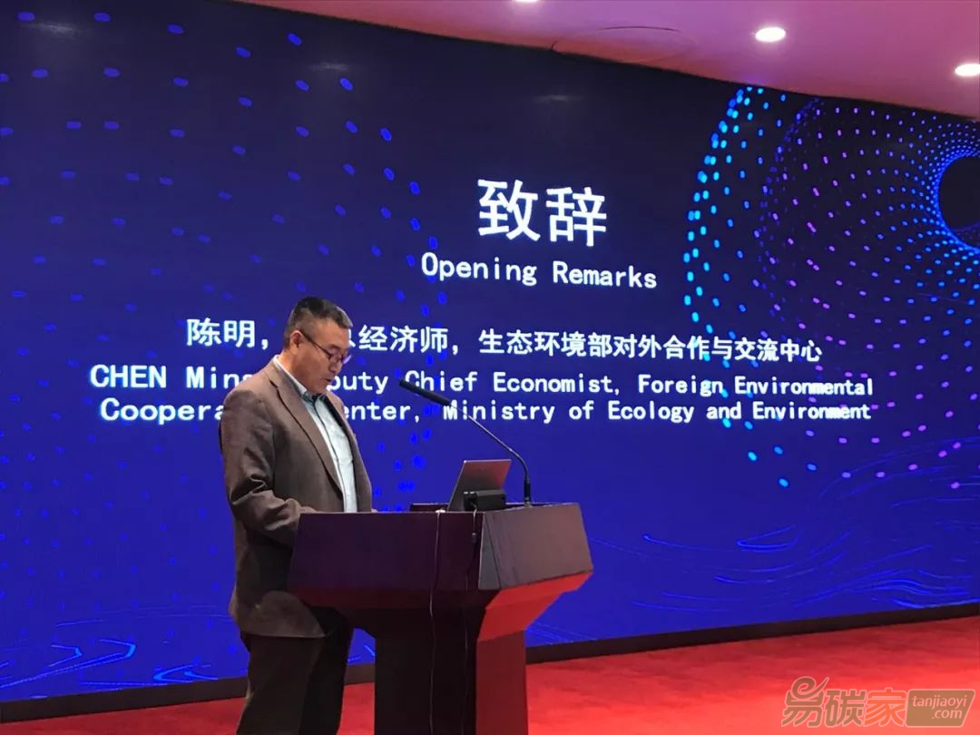 生態(tài)環(huán)境部對外合作與交流中心副總經濟師陳明為開幕式致辭