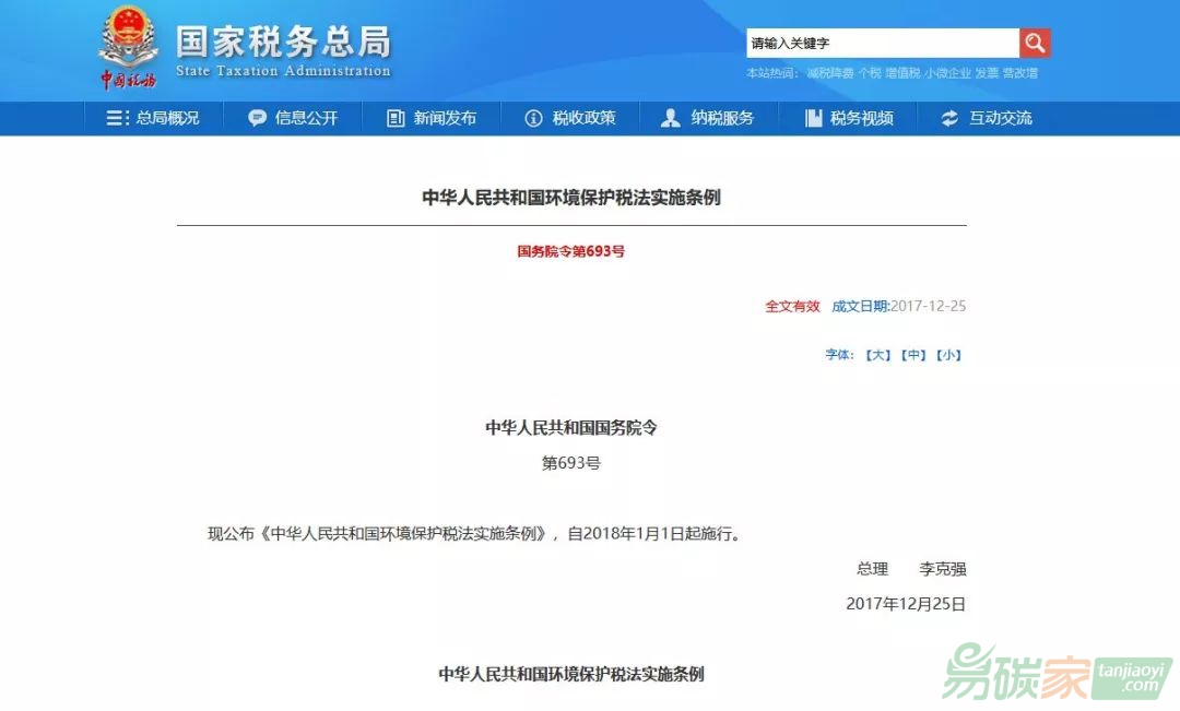 《中華人民共和國(guó)環(huán)境保護(hù)稅法實(shí)施條例》自2018年1月1日起施行