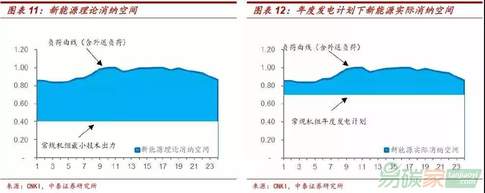 吉林在供暖和非供暖季,由于供暖季熱電聯(lián)產(chǎn)機(jī)組最小出力變大,調(diào)峰性能變差,導(dǎo)致蒙東、吉林供暖季新能源消納空間占用電負(fù)荷量的比例分別為39.1%和5.9%,低于非供暖季的81.5%和33.7%,這是冬季三北棄風(fēng)棄光嚴(yán)重的根本原因。