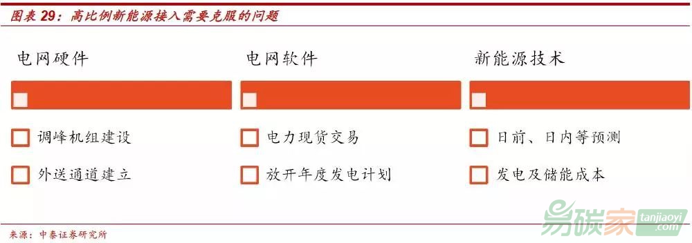 電源結(jié)構(gòu)、電力體制以及新能源技術(shù)是高比例接入必須克服的問(wèn)題。在新能源高比例接入背景下,對(duì)電網(wǎng)硬件來(lái)說(shuō),要求電網(wǎng)調(diào)峰能力足夠強(qiáng),同時(shí)具有互聯(lián)互通的通道;對(duì)電網(wǎng)軟件來(lái)說(shuō),要求可以實(shí)現(xiàn)電力現(xiàn)貨交易,以及放開(kāi)年度發(fā)電計(jì)劃;對(duì)于新能源技術(shù)來(lái)說(shuō),要求實(shí)現(xiàn)日前、日內(nèi)精準(zhǔn)發(fā)電預(yù)測(cè),同時(shí)發(fā)電和儲(chǔ)能成本較低。