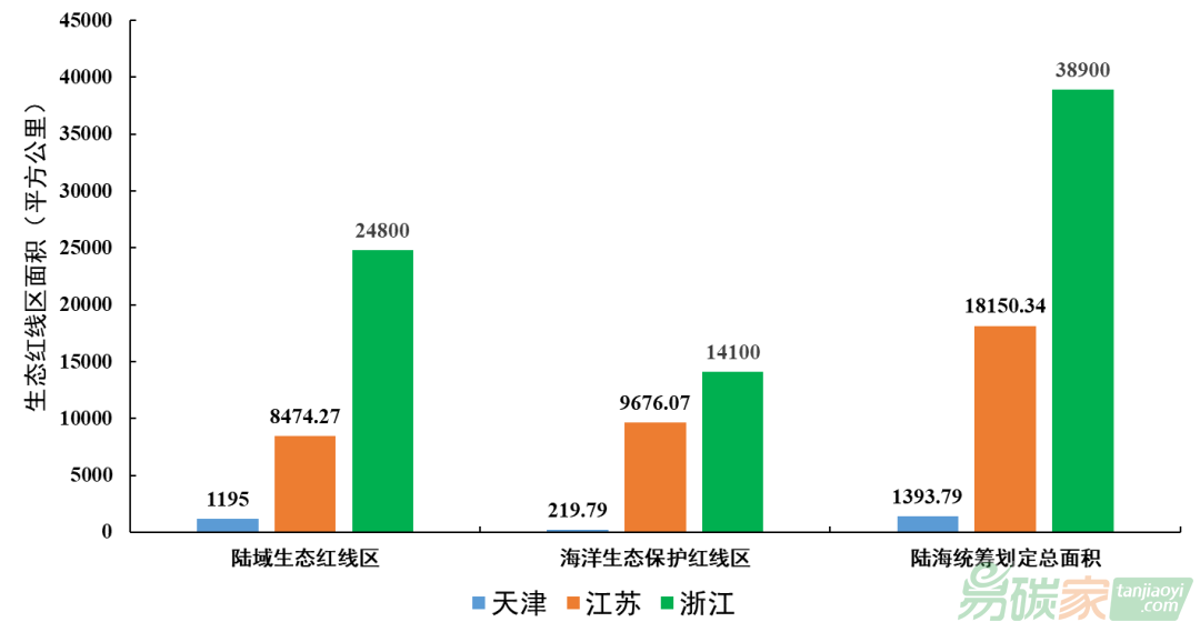 已批復(fù)的沿海省(市)生態(tài)保護(hù)紅線區(qū)面積