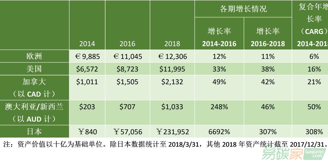 在2018年初,全球可持續(xù)投資資產(chǎn)在全球五個(gè)主要