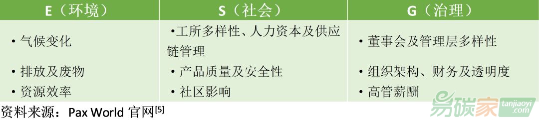 ESG因子為投資組合經(jīng)理提供了對(duì)公司管理質(zhì)量、文化、風(fēng)險(xiǎn)狀況和其他特征的深入了解。通過增加與ESG分析相關(guān)的審查水平,Pax World試圖確定是所在行業(yè)的領(lǐng)導(dǎo)者,并具備更好的管理和前瞻性的思考、能更好地預(yù)測和降低風(fēng)險(xiǎn)、符合企業(yè)責(zé)任的積極標(biāo)準(zhǔn)、專注于長期的公司。下圖展示了該基金管理公司遵循的ESG因子,環(huán)境方面包括氣候變化、排放及廢棄物、資源效率,社會(huì)方面包括工所多樣性、人力資本及供應(yīng)鏈管理、產(chǎn)品質(zhì)量及安全性、社區(qū)影響,治理方面包括董事會(huì)及管理層多樣性、組織架構(gòu)、財(cái)務(wù)及透明度、高管薪酬。