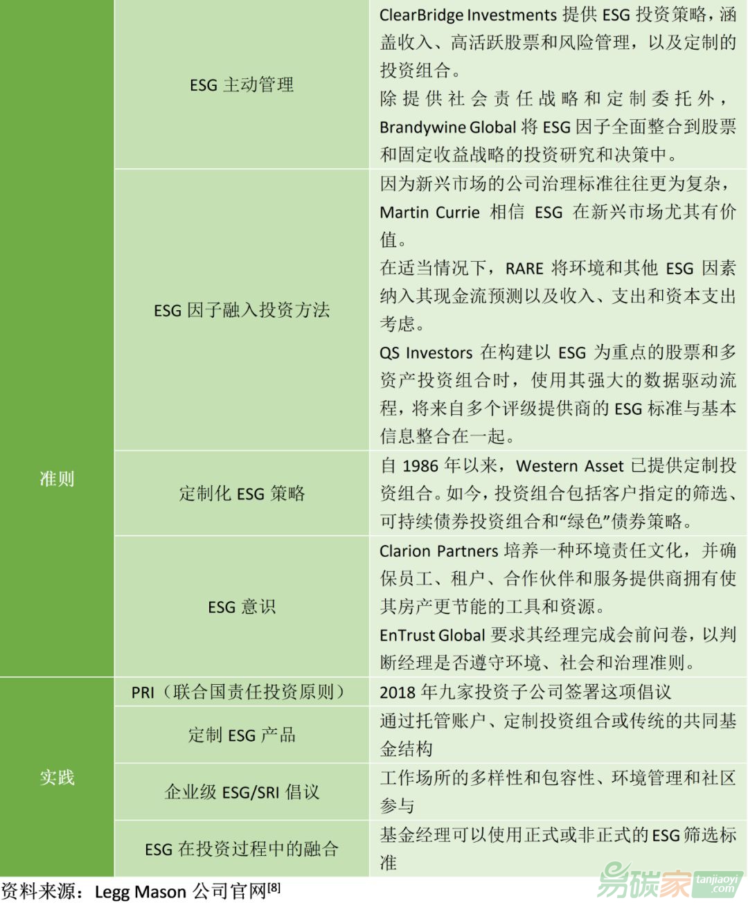 表8 Legg Mason的ESG投資準(zhǔn)則及實(shí)踐