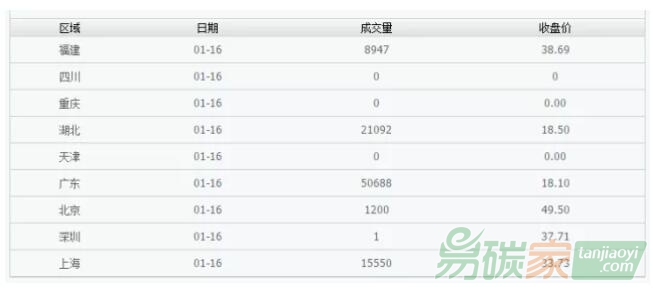 根據7個省份的碳排放交易試點數據來看,目前碳價格整體水平在20-50元/噸。對于企業(yè)來說,影響還比較小。對于純投資者而言有較大的風險,但機會也很大。截至到1月16日,從成交量來看,廣東、湖北及上海占比較大。