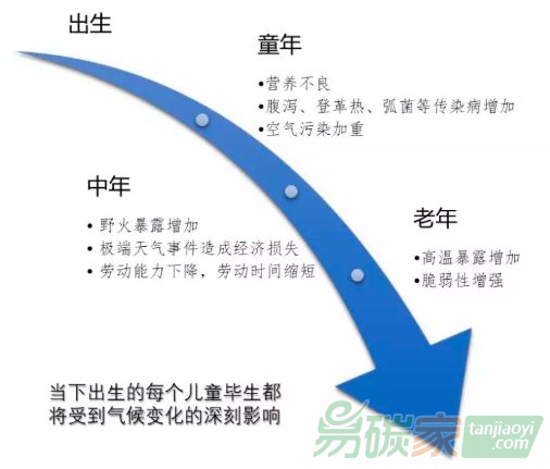 圖1:當(dāng)下出生的兒童在其不同年齡段可能受到的氣候變化對人群健康影響[2]
