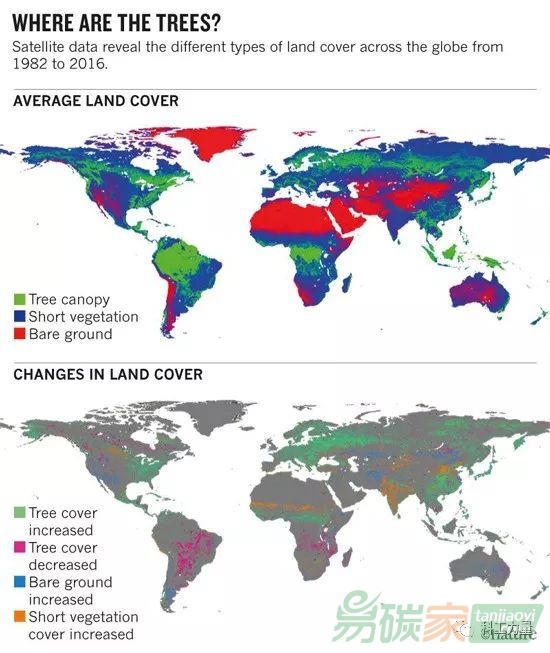 全球1982~2016年林地變化衛(wèi)星數(shù)據(jù)圖 來源:《自然》雜志
