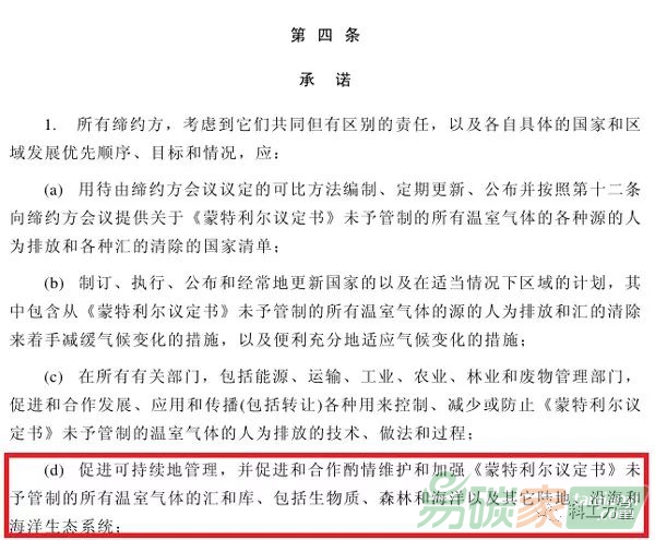 《聯(lián)合國氣候變化框架公約》第四條第1款(d)項