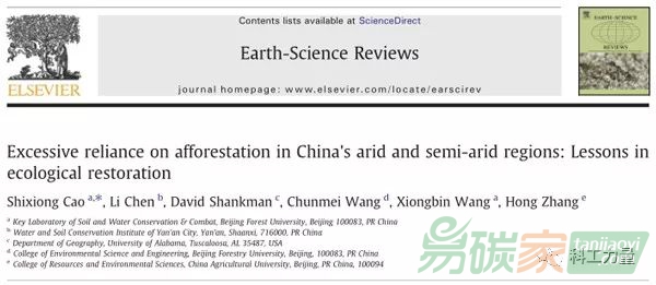 實際上,關(guān)于西北干旱地區(qū)“植樹造林”是否“耗水”問題,中國有關(guān)學(xué)者也在很早就展開相關(guān)研究。2011年在國際著名地學(xué)期刊《Earth-Science Rexiews》上,一篇名為《Excessive reliance on afforestation in China's arid and semi-arid regions: Lessons in ecological restoration》文章就指出,中國西北干旱地區(qū)植樹造林需要因地制宜,選擇灌木草本或原生植物環(huán)境改善。
