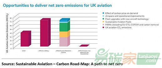 (英國民航業(yè)2050碳中和路線,來源:可持續(xù)民航協(xié)會)