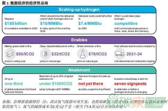 但根據(jù) BNEF 的研究,由于政策缺位,行業(yè)投資和擴(kuò)張得不到支撐,目前氫能經(jīng)濟(jì)的前景尚不明朗。單靠氫能產(chǎn)業(yè)規(guī)模的擴(kuò)張,也無(wú)法解決所有的