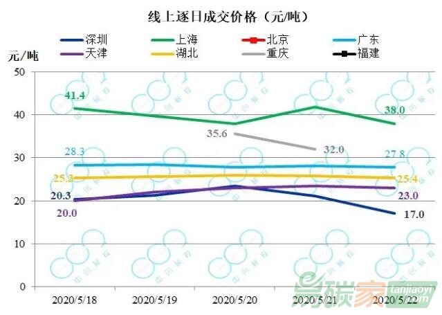 上海碳價收跌,周五收盤于38.0元/噸,較上周五(43.6元/噸)下跌13%,本周線上成交0.6萬噸,線下無成交。