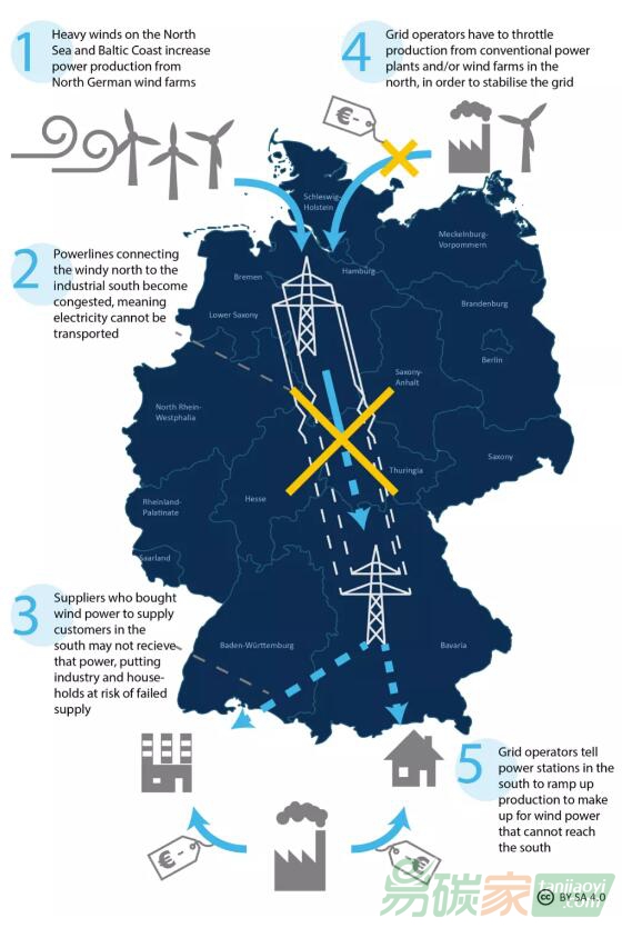 ——命令南德的傳統(tǒng)電站生產(chǎn)更多的電力,以滿足南德消費者的需求,這些消費者的供應商購買了無法通過的北德風電。