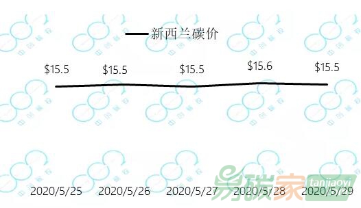 2020年5月25日至2020年5月29日,新西蘭碳價(jià)穩(wěn)定在15.5美元每噸左右。