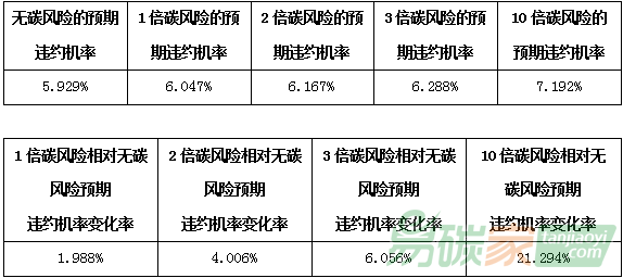?。?)碳價(jià)上升會(huì)導(dǎo)致企業(yè)預(yù)期違約率上升;碳價(jià)上升速度越快,預(yù)期違約率上升速度越快。