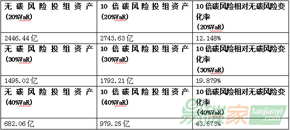 表4. 投資組合不同倍數(shù)碳價(jià)風(fēng)險(xiǎn)分析